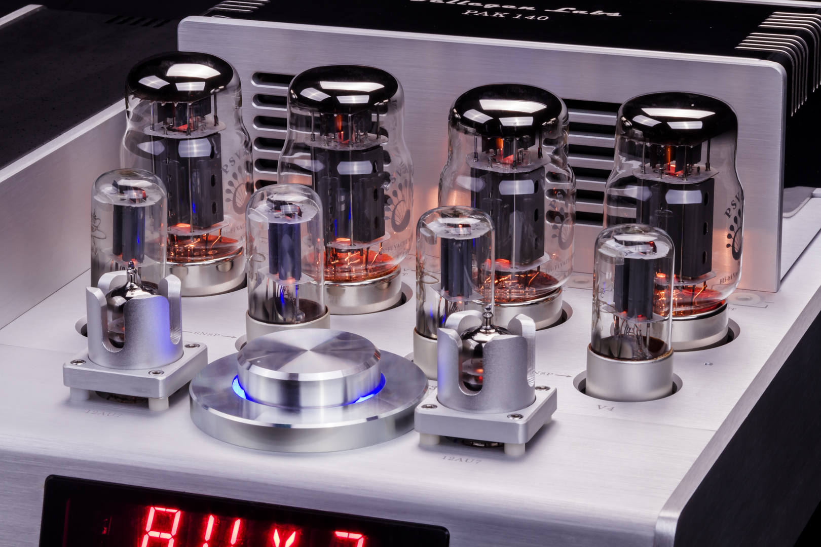 Using four 6N8Ps and two 12AT7s at the preamp stage, the PAK140 has 4 Psvane KT88s for delivering its output. The KT88 was originally designed for hi-fi manufacturers for its high-power and low-distortion characteristics. The Psvane tubes are frequently said to have a tonal quality that outperforms that of the Telefunken’s. The great clean tone and yet incredibly powerful full spectrum of signal handling allow KT88 to excel at reproducing the sounds of the string sections in the orchestra. The PAK140 does a great job at showcasing the honest, clean and powerful sound the KT88 is capable of. Aesthetically, the pristine metallic coldness expressed in its design makes a gallant statement about the theme presented by Psvane – ‘The Sounds of the Aristocrats’. PAK140 makes for a proud addition to your sound system.